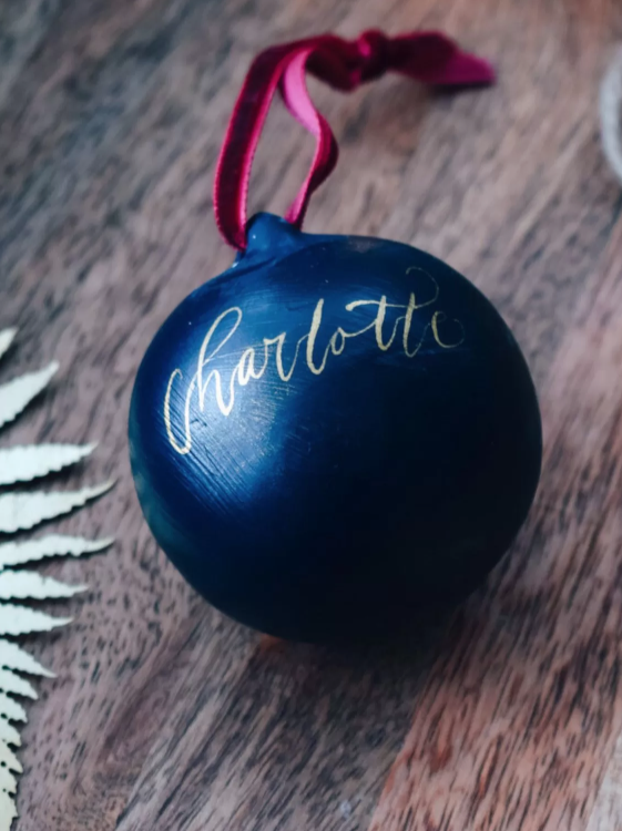 12. Traditional calligraphy Christmas bauble by the lovely Lyndsey at Wild Sea Calligraphy via Holly & Co