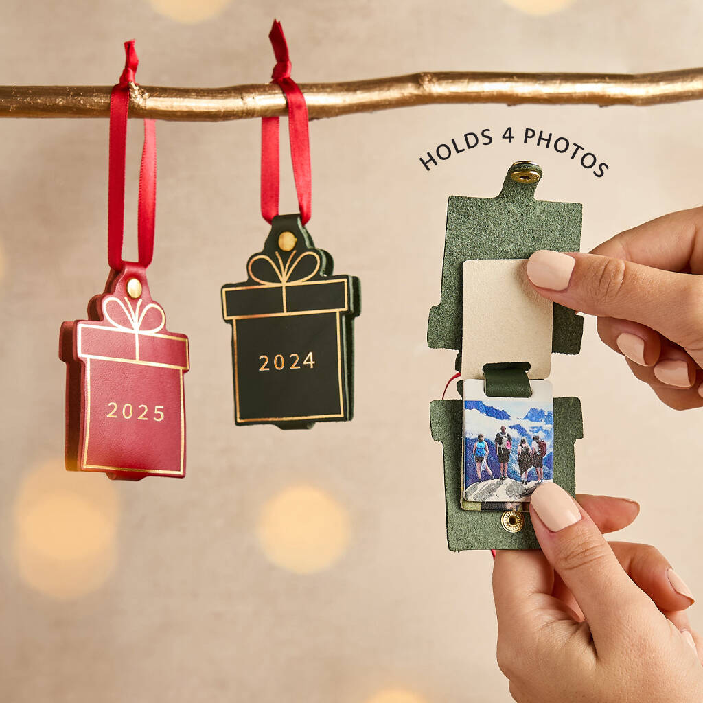 14. Personalised leather Christmas present photo bauble by Create Gift Love on Not On The High St