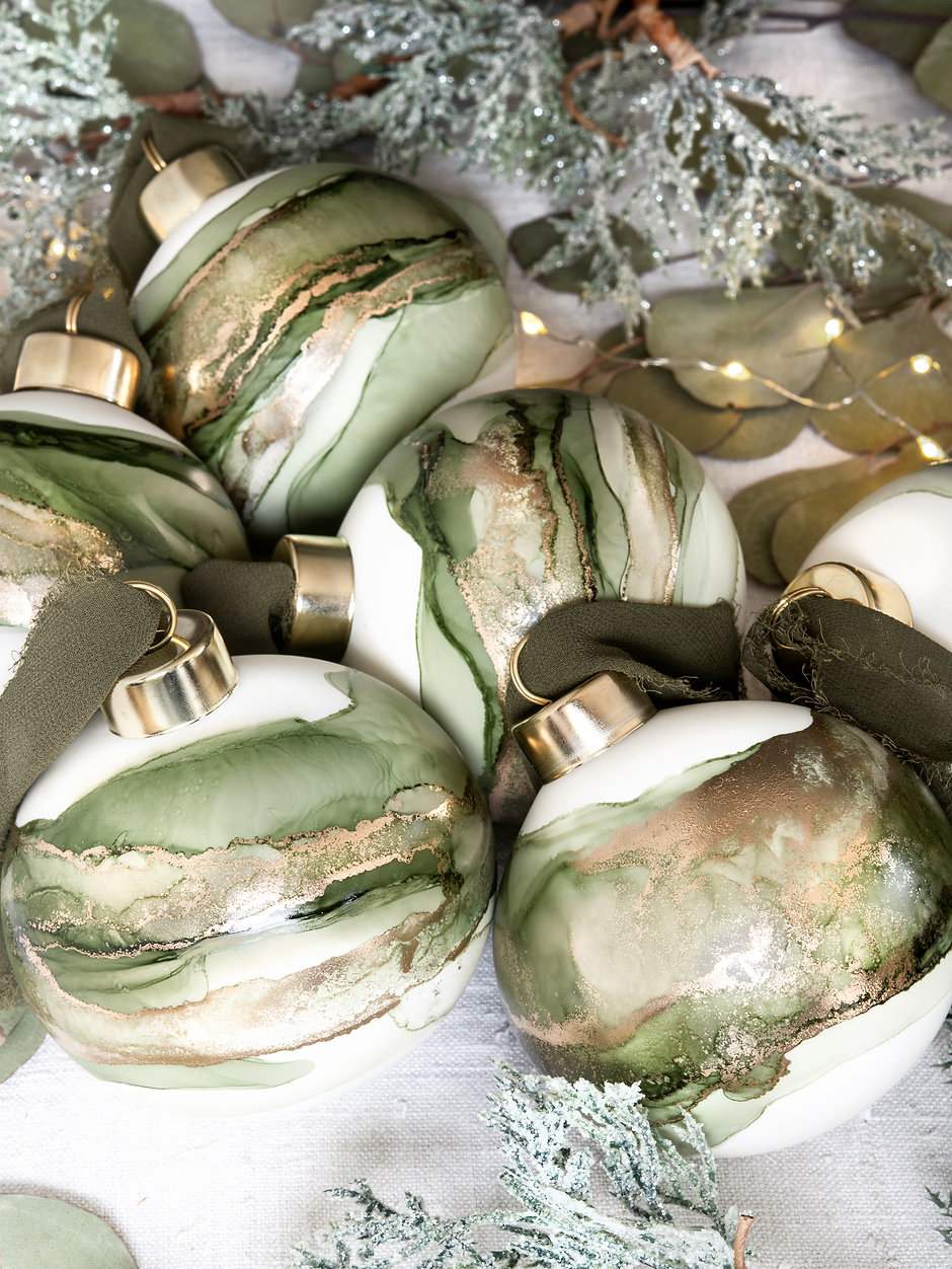 6. Lindsay Oliphant’s beautiful moss green glass baubles