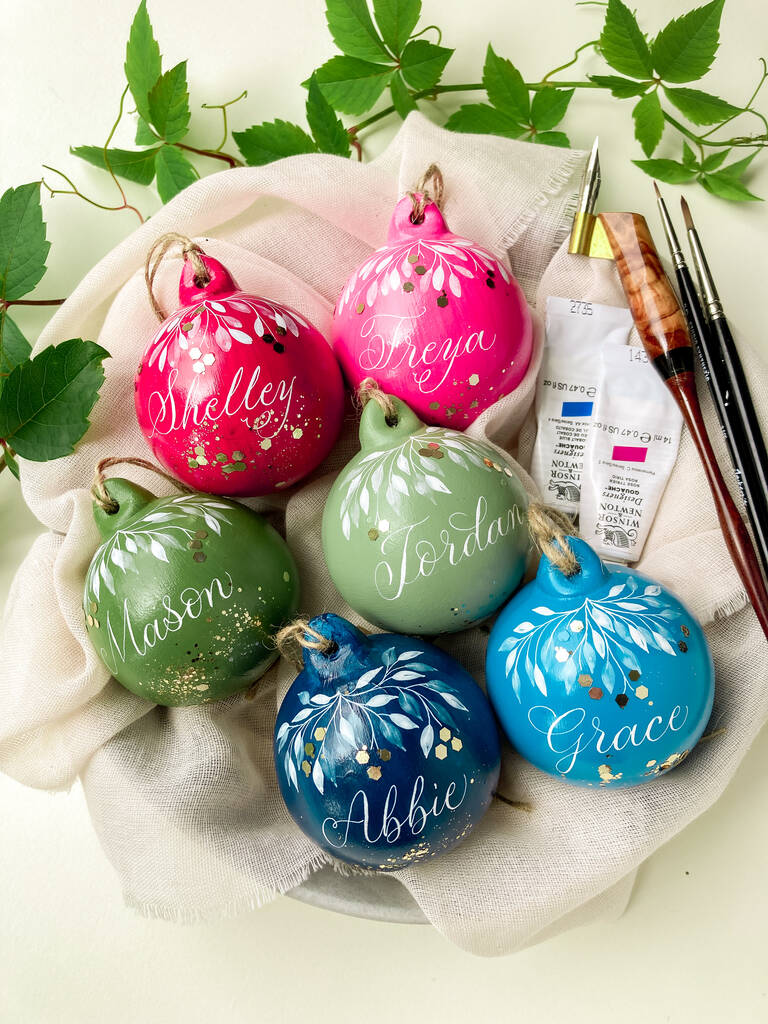4. Personalised Christmas baubles with calligraphy (these are mine) on Not On The High St