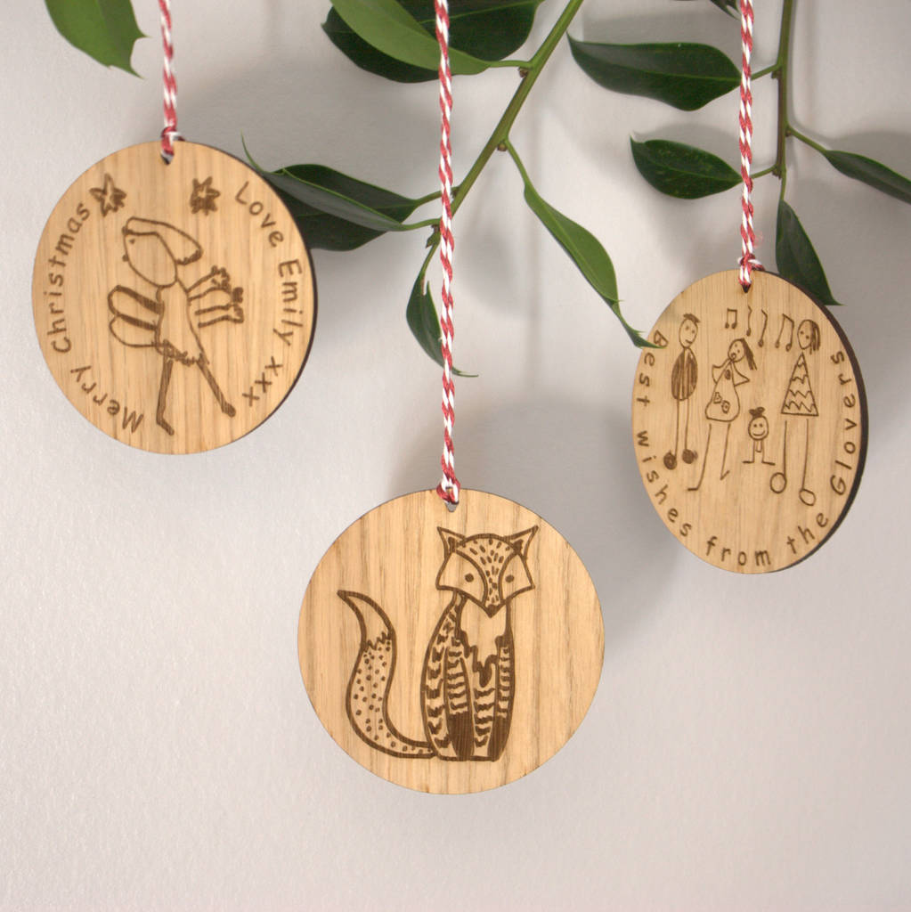 7. Personalised wooden bauble with your drawing engraved by Angela & Mark Gilbert in Bolton
