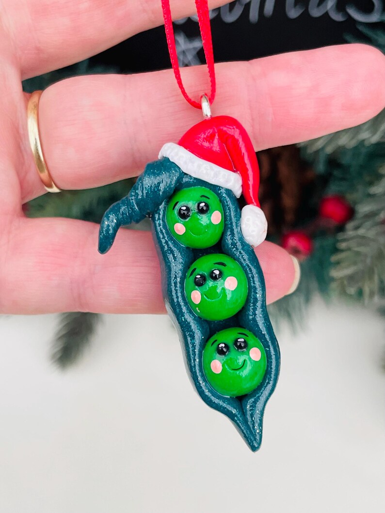 9. Hand made polymer clay peas Christmas tree decoration by AmyMadeUK on Etsy